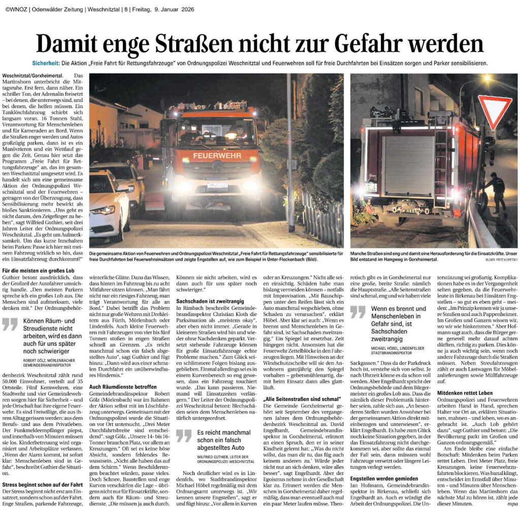 Eine Anwohnerin entdeckte ihre Nachbarin hilflos und eingeschlossen in Ihrer Wohnung und setzte daraufhin einen Notruf ab. Rettungsdienst sowie die Feuerwehr waren umgehend zur Stelle und verschafften sich einen Zugang zur Wohnung. Die Nachbarin wurde vom Rettungsdienst medizinisch betreut und der Einsatz für die freiwillige Feuerwehr war beendet. Die Feuerwehr Gorxheimertal war mit zwei Fahrzeugen und insgesamt elf Einsatzkräften im Einsatz.